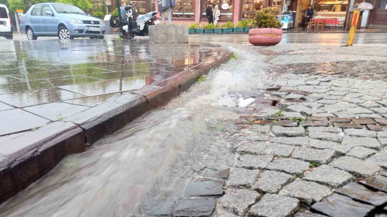 Eskişehir’de Meteoroloji 3. Bölge Müdürlüğü’nün tahmin ettiği üzere öğleden sonra etkili olan sağanak yağış sonucunda Odunpazarı sokaklarını su bastı.