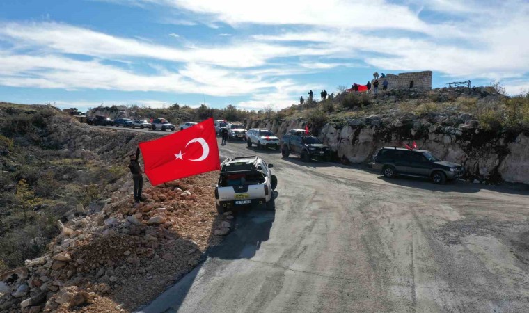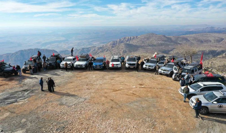 Şırnak’ta terörden temizlenen Gabar Dağ’ına çıkan off-road pilotları, Türk bayrağı açarak eşsiz manzarada hatıra fotoğrafı çekti.