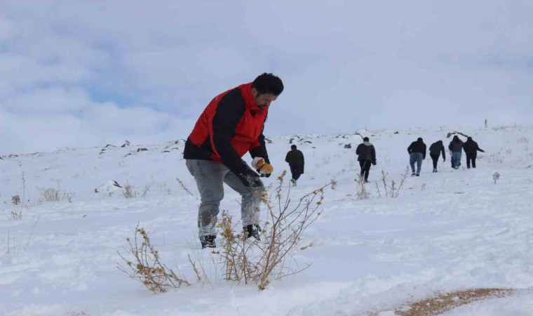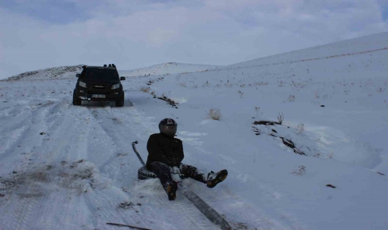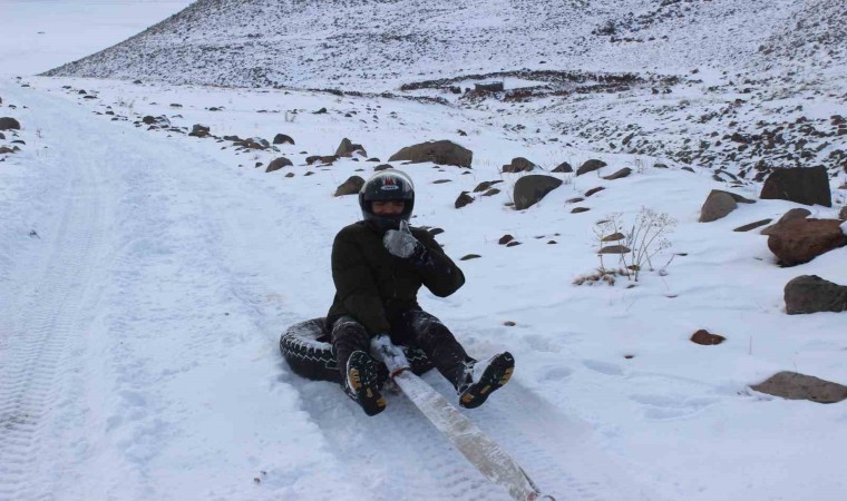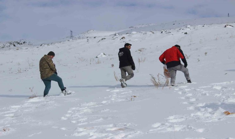 Erzurum Macera Off-Road Doğa Sporları Kulübü üyeleri lastik raftingi yaparak kar üzerinde off-road keyfi yaşadı, ardından yaban hayvanları için doğaya yem bıraktı.