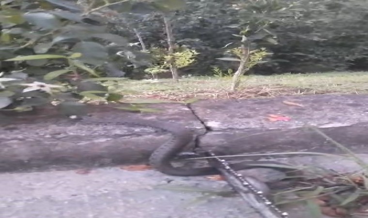 Bu yıl yurt genelinde olduğu gibi Karadeniz Bölgesi’nde yılan görülme vakaları artarken, son olarak Trabzon’un Of ilçesinde bir fındık bahçesinde görülen yılan cep telefonu kameralarına yansıdı.