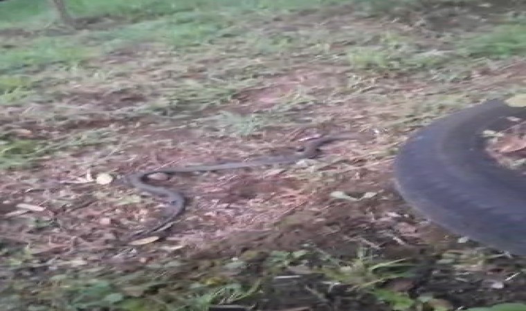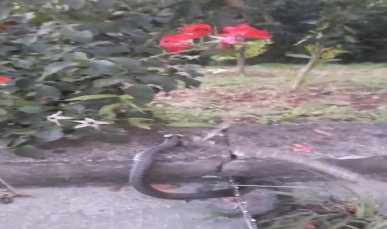 Of ilçesine bağlı Yemişalan mahallesinde yaşayan Önder Yılmaz Bilgin, fındık toplarken evinin yakınında bir yılan görmesiyle şaşkınlığını gizleyemeyerek o anları saniye saniye kaydetti ve ortaya renkli anlar çıktı. Görüntülerde Bilgin’in yılanla bir süre elindeki çubukla oynadığı görülürken, o sırada yılanın saldırır bir pozisyonda olması dikkat çekti.