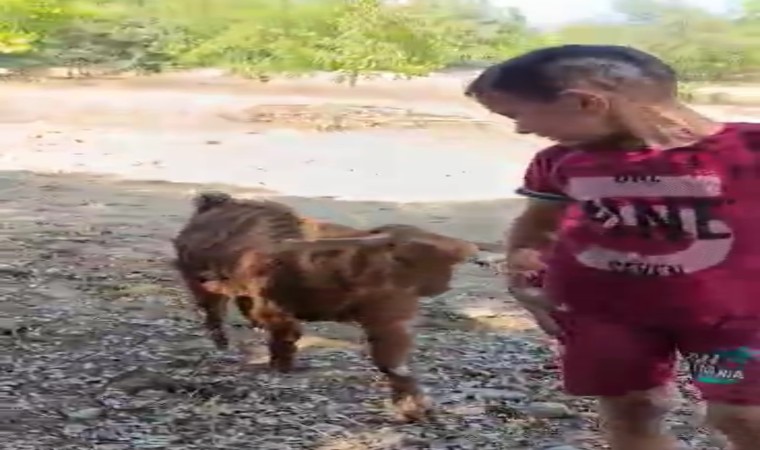 Adana’nın Feke ilçesinde oğlak ile bir ailenin oyun oynaması ortaya renkli görüntüler çıkardı.