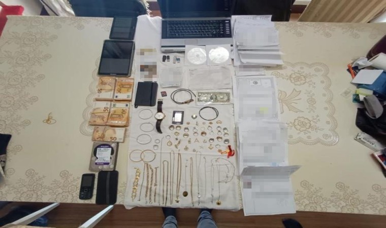 Operasyon sonucunda 3 tabanca, 15 av tüfeği, 85 tapu, 680 senet, 380 çek, 18 bin 500 araç satışı sözleşmesi, 800 vekaletname, 80 banka cüzdanı, 60 kredi kartı, 2 kripto para soğuk cüzdan, 80 para transferi içeren ajanda, 11 milyon lira, 66 cep telefonu, 36 bin dolar ve 80 bin lira, 33 kilo altın ele geçirildi.