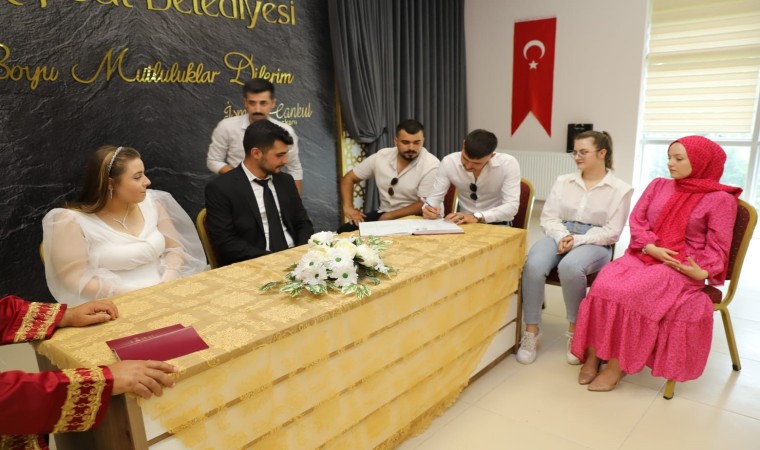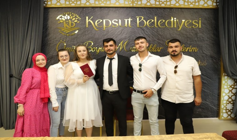 Kepsut Belediyesinde Yazıişleri Müdürü Osman Eskitürk, evlenen oğlu Alihan ve Cansu’nun nikahını kıydı. Aynı zamanda Alihan’ın doğum günü pastası da nikah sonrası kesilerek, kutlandı.