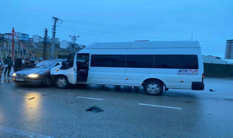 Samsun’un Kavak ilçesinde öğrenci servisinin otomobile çarptığı kazada bir kişi yaralandı.