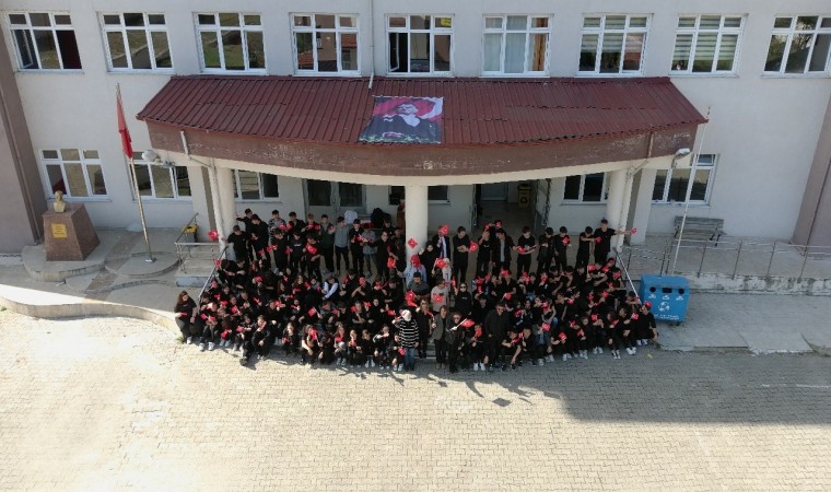 Yenice ilçesine bağlı Yortan Beldesindeki Çok Programlı Anadolu Lisesi öğrencileri ve öğretmenleri "100. Yıl" yazılı koreografı oluşturdu.