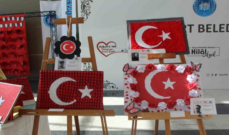 Akyurt Belediyesi Necip Fazıl Konferans Salonu’ndaki serginin açılış kurdelesini kesen Akyurt Belediye Başkanı Hilal Ayık, İlçe Milli Eğitim Müdürü Haluk Saydan, Ankara Güzel Sanatlar Lisesi Müdürü Boran Ergüç ve vatandaşlar, öğrencilerin büyük bir emekle hazırladığı Türk bayraklarını ilgiyle inceledi. Tasarım teknolojileri öğretmenleri Bera Tuğluca ve Yasemin Ersoy ile birlikte Türk bayraklarını hazırlayan öğrenciler, her bir bayrağı ise Kurtuluş Savaşı’nda mücadele eden komutanlara adadı. Bayrakların yanında komutanların fotoğrafları ve hangi görevlerde bulunduklarına dair kısa birer özgeçmişleri de yer aldı. Sergide bir bayrak ise katılımcıların parmak izi ile oluşturuldu.