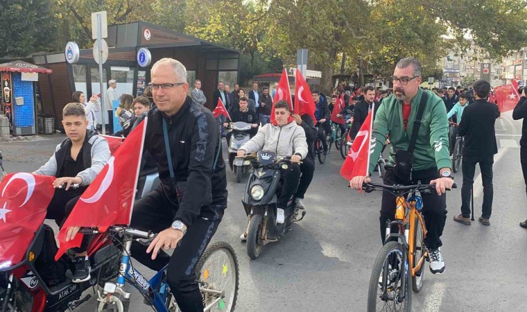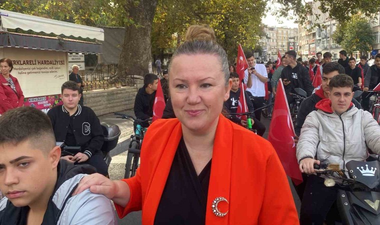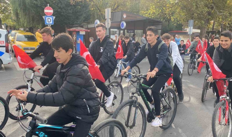 Kırklareli’nde öğrenciler Cumhuriyet’in 100. yılı etkinlikleri çerçevesinde bisikletlerin pedalına bastı.