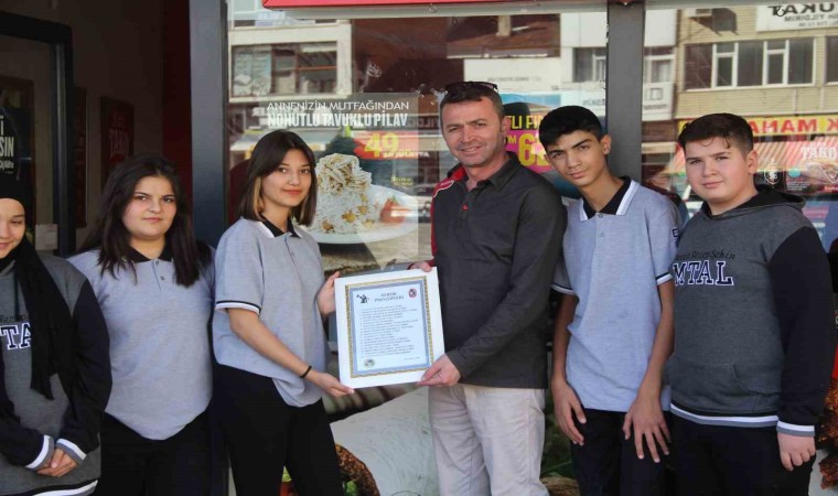 Samsun’un Havza ilçesinde "Çevreme Duyarlıyım, Değerlerime Sahip Çıkıyorum (ÇEDES) Projesi" kapsamında öğrenciler Ahiliğin kurallarını çerçeveletip esnaflara verdiler.