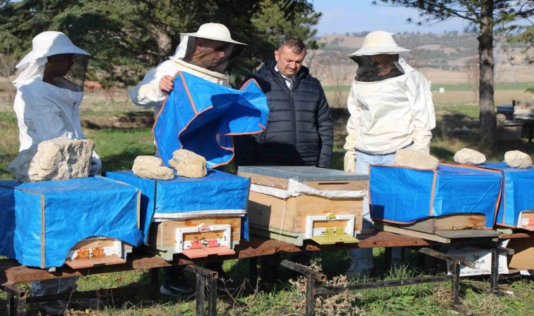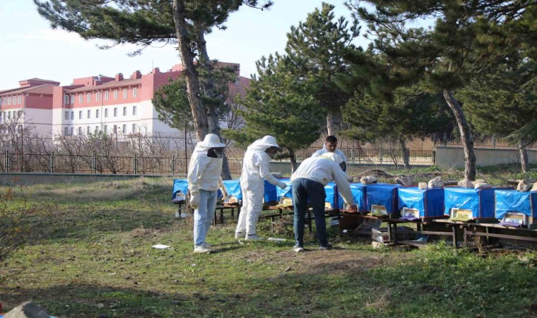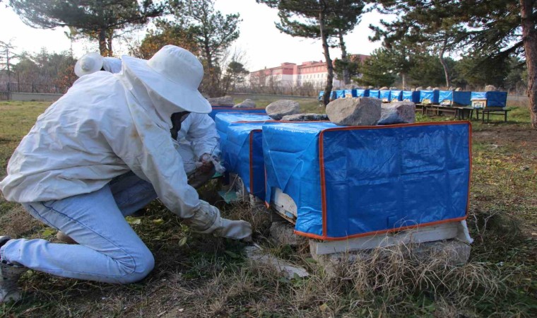 Maske ve ekipmanlarını giyip kovanlardaki arıların kışlık bakımını yapan öğrencilerinden Osman Taner Artış ise “En güzel bal bizim bal. İddialıyız” şeklinde konuştu.