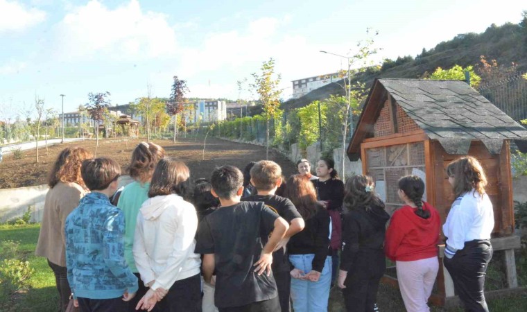 Düzce Üniversitesi gezisinde 23 Nisan İlkokulu’ndan 1 öğretmen ve 30’a yakın öğrenci yer aldı. Orman Mühendisliği Bölümü’nden Dr. Öğretim Üyesi Neval Güneş Özkan rehberliğinde Süs ve Tıbbi Bitkiler Botanik Bahçesi’ni gezen minik ziyaretçilere bahçe ve bitkiler hakkında bilgiler paylaşıldı. Bahçeyle iç içe olan öğrenciler, Arı Oteli’ni de dikkatle incelediler.
