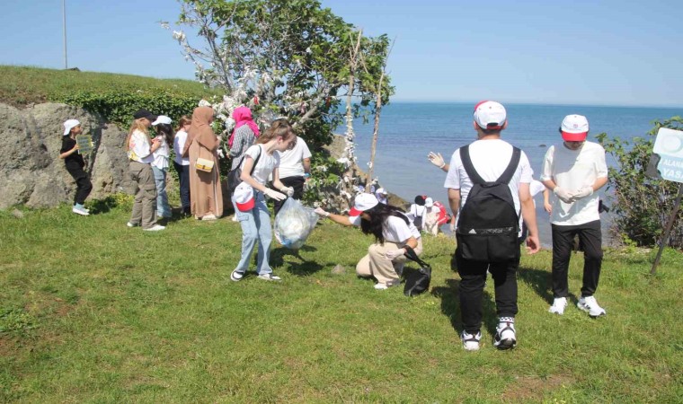 Ordu’da, 5 Haziran Dünya Çevre Günü dolayısıyla düzenlenen programda öğrenciler, Yason Burnu’nda ve deniz kenarında çöp topladı.