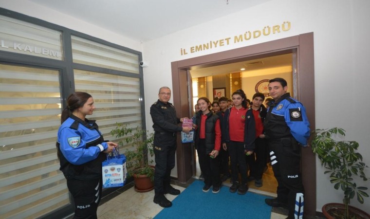 Elazığ Emniyet Müdürlüğü Toplum Destekli Polislik Şube Müdürlüğü ekipleri, öğrencilerin polis teşkilatını yakından tanımaları ve yerinde görmelerini sağlamak, gelecek planları ile ilgili meslek seçmelerinde fikir vermek ve polis halk ilişkilerini geliştirmek için çalışmaları sürdürüyor. Bu çerçevede ‘Hayata İyilik Kat’ Çocuk ve Gençler Sosyal Koruma ve Destek Programı (ÇOGEP) çerçevesinde Balakgazi Ortaokulunda bulunan 23 öğrenci, İl Emniyet Müdürü Adnan Karayel’i makamında ziyaret etti. İl Emniyet Müdürü Karayel, kendisini ziyaret eden öğrencilere, Türk ve dünya klasiklerinden kitaplar ve çeşitli hediyeler verdi. Öğrenciler, daha sonra İl Emniyet Müdürlüğü birimlerini ardından da Abdullahpaşa Polis Merkezi Amirliğini ziyaret ederek ekiplerden bilgiler aldı.