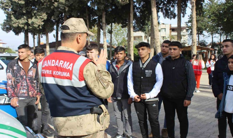 HATAY (İHA) – Hatay’ın Reyhanlı ilçesinde okulları ziyaret eden jandarma ekipleri, yaptıkları çalışmalar ve kullandıkları teknikler hakkında öğrencilere bilgi verdi.