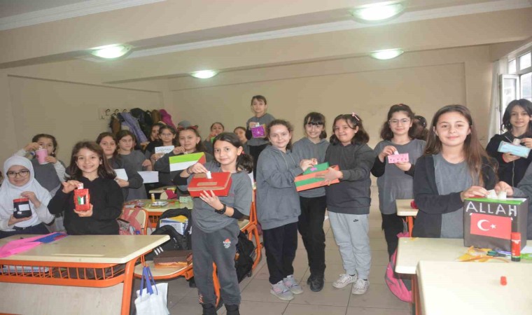 Ordu’nun Ünye ilçesinde kendi yaptıkları kumbaraları harçlıklarıyla dolduran 25 öğrenci, İsrail’in Gazze’ye yönelik saldırılarına tepki göstermek ve Filistinli kardeşlerine destek olmak için bağışladı.