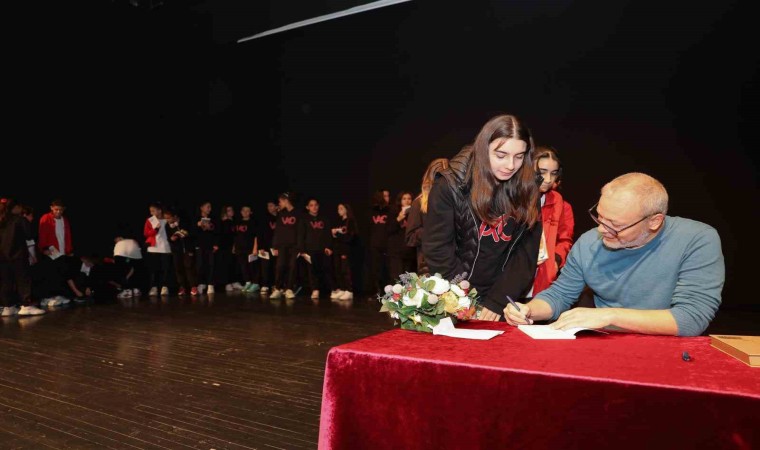 Kitapta yer alan karakterlere yönelik gelen soruları da samimiyetle yanıtlayan Kaan Elbingil, yazarlık serüvenini de öğrencilerle paylaştı.