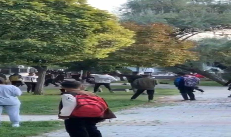 Nevşehir’de okul çıkışı karşılaşan iki öğrenci grubunun kavgası, cep telefonu kamerasına yansıdı.