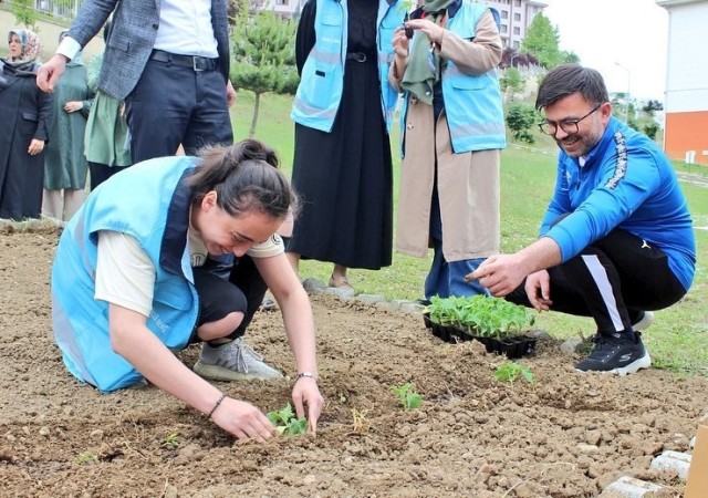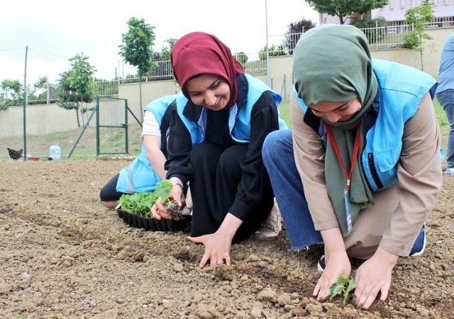 DÜZCE(İHA) – Düzce’de gençler yurdun bahçesinde oluşturdukları hobi bahçesine sebze fidanı dikti.