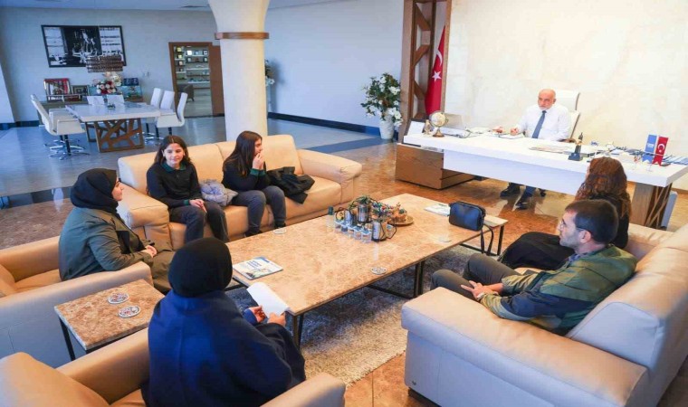 Başkan Sandıkçı, röportajın sonunda öğrenciler ile hatıra fotoğrafı çektirdi.