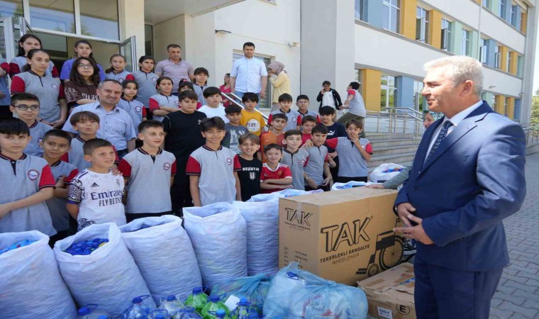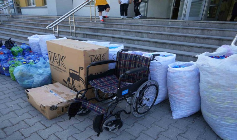 150 kilogram civarında mavi kapak topladıklarını söyleyen Özden, “Biz de bunları atık yağları belediyeye, kağıtları milli eğitime, kapakları da Özel Bireyler Derneği aracılığıyla geri dönüşüm çalışması yapıyoruz. Bunlardaki hedefimiz çocuklarda geri dönüşüm bilincini oluşturmak ve dünyanın kullanılabilir kaynaklarını gelecek nesillere taşıyabilmek. Örneğin bir ton atık kağıttan binlerde yüzlerce ağaç kurtuluyor. Gelecek nesillerimizin ağaçla yeşillikle temiz havayla buluşmasını sağlamak için yapıyoruz bunu. Öğrencilerimizde velilerimizde öğretmen arkadaşlarımızda da bu bilinci oluşturmaya çalışıyoruz. Toplamış olduğumuz kapaklara 200 kilograma bir tekerlekli sandalye veriliyor. Bunu da ihtiyacı olan bireylere vermeye çalışıyoruz. Şuan toplamış olduğumuz kapaklarda 150 kilogram civarında. Emeği geçenlere teşekkür ediyoruz” diye konuştu.