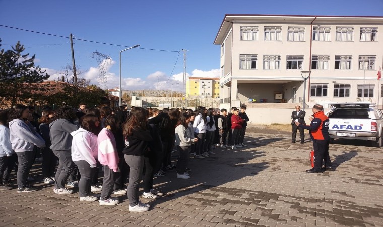 Çankırı’da AFAD tarafından okulda düzenlenen tatbikatta öğrenciler yangınlara müdahaleyi uygulamalı olarak öğrendi.