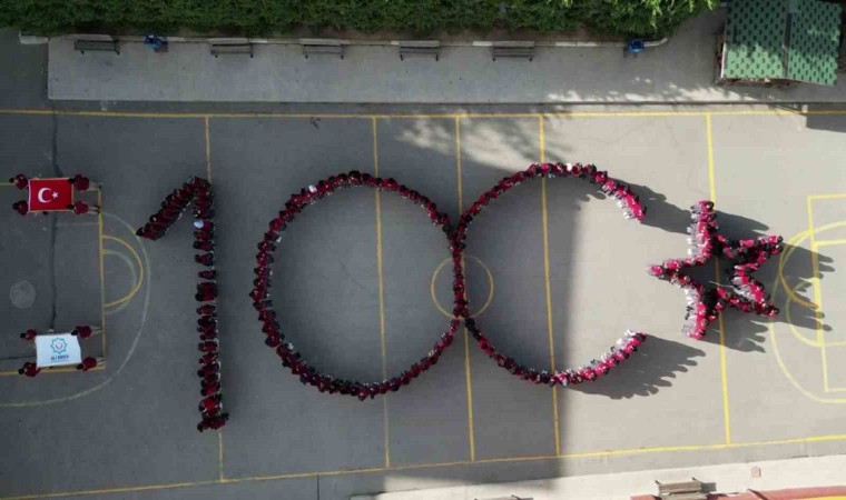 Sultanbeyli’de Ali Kuşçu İmam Hatip Ortaokulu öğrencileri, Cumhuriyetin 100. yılına özel koreografisi yaptılar. Öğrencilerin yaptığı koreografi havadan görüntülendi.