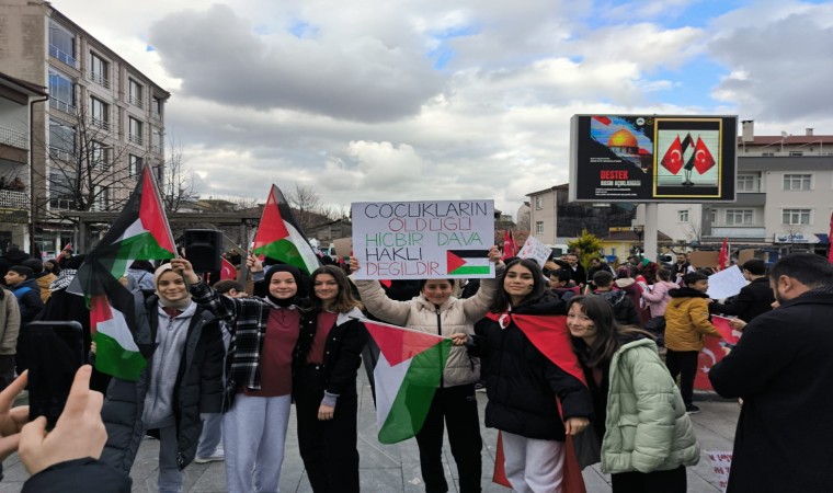 Samsun’un Ladik ilçesinde imam hatip ortaokulu öğrencileri, Filistin için destek yürüyüşü gerçekleştirdi.