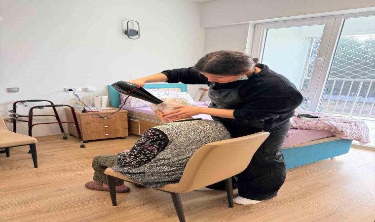 Çorum’un Osmancık ilçesinde Mesleki Eğitim Merkezi’nde eğitim alan öğrenciler, huzurevi sakinlerine kuaförlük hizmeti verdi.