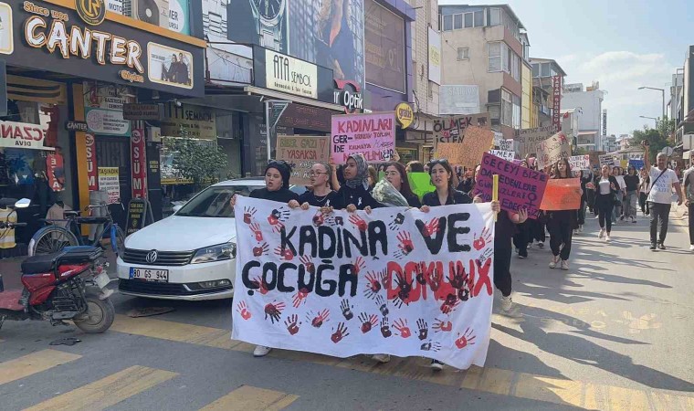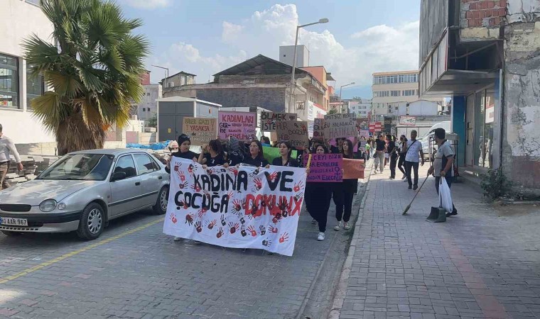 Osmaniye’de bir grup lise ve üniversite öğrencisi, kadına ve çocuğa yönelik şiddeti protesto eden yürüyüş yaptı.