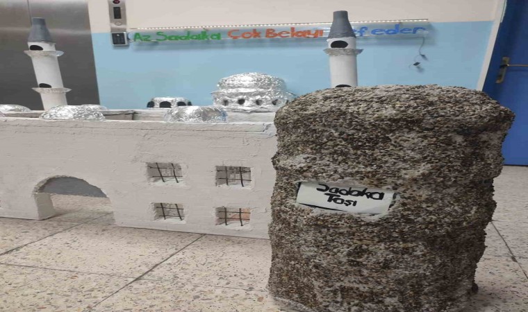Fevzi Çakmak Orta Okulu 8. sınıf öğrencileri, yardımlaşma ve dayanışma duygusunu kazanmak için Selçuklu ve Osmanlı dönemlerinde yaygın olarak kullanılan "sadaka taşı" uygulamasını hayata geçirdi. Çeşitli materyallerden yapılan cami ve sadaka taşına öğrenciler, ihtiyaç sahipleri için para bırakıyor. İhtiyaç sahibi öğrenciler ihtiyacı kadar parayı sadaka taşından alıyor.