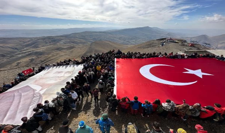 Dağcılar yaklaşık 3 saatlik yürüyüşün ardından Palandöken'in zirvesinde Türk bayrağı açıp, saygı duruşunda bulundu. Burada da fotoğraf çekilen öğrenciler daha sonra inişe geçti. (DHA)