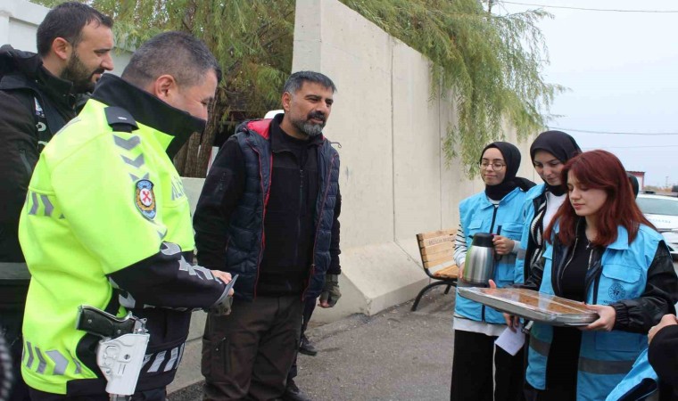 Erzincan Öğrenci Yurdu Müdürlüğü, "Gönül Bağı" Projesi kapsamında Akyazı Polis Kontrol noktasında görevli polis memurlarına destek ziyaretinde bulundu. Ziyarette, yurt öğrencileri görevi başındaki polis memurlarına çay ve tatlı ikramında bulunarak, soğuk kış günlerinde