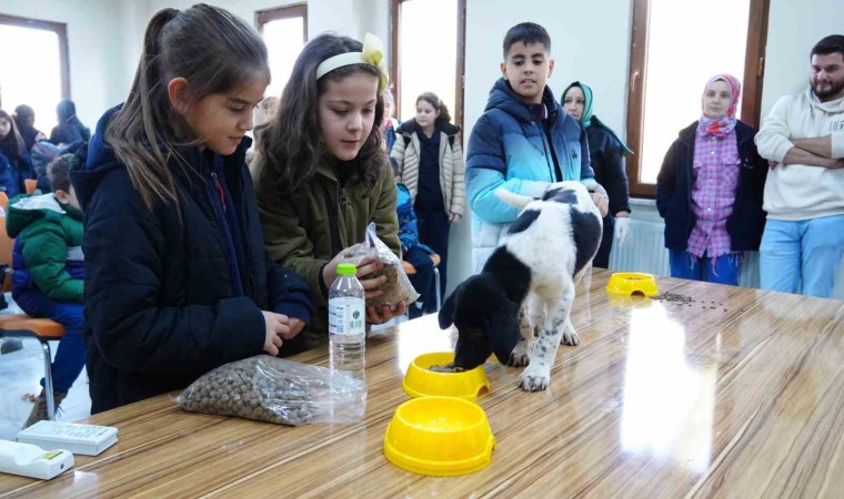 DÜZCE(İHA) – Düzceli öğrenciler sokak hayvanları için anlamlı destekte bulunarak 225 kilogram mama bağışladılar.