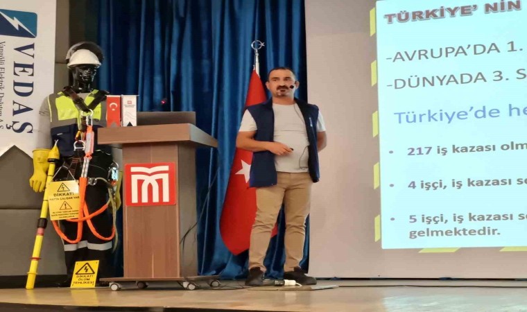 Van, Bitlis, Muş ve Hakkari illerinde elektrik dağıtım hizmeti veren Vangölü Elektrik Dağıtım A.Ş. (VEDAŞ), uzman ekipleri, ilk yardım ve iş güvenliği eğitimi çerçevesinde Muş Alparslan Üniversitesi öğrencileriyle buluştu. İş Güvenliği Uzmanı Salih Timur, İş Güvenliği Sorumlusu Emrah Sayılgan ve VEDAŞ İş Yeri Hekimi Dr. Hamit kasap, Teknik Bilimler Meslek Yüksekokulu öğrencilerine yönelik ilk yardım ve iş güvenliği eğitimi verdi.