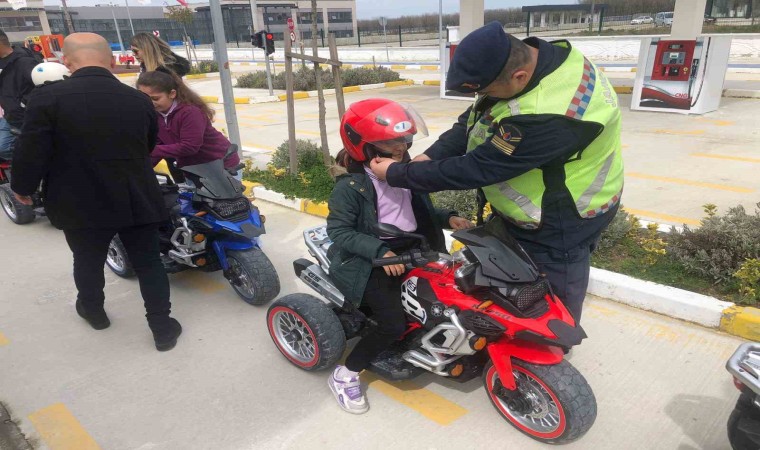 Tekirdağ’da jandarma ekiplerince trafik eğitim parkında öğrencilere trafik eğitimi verildi.