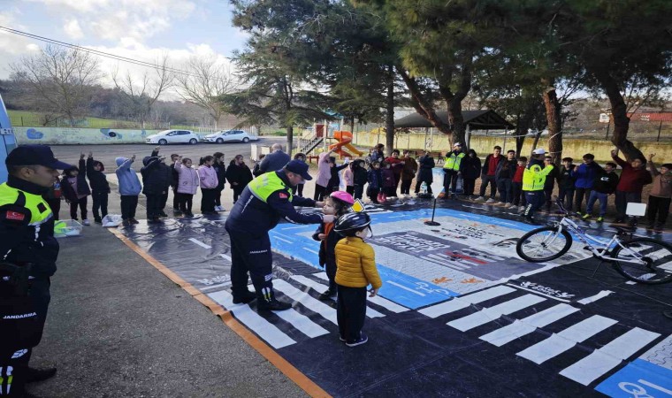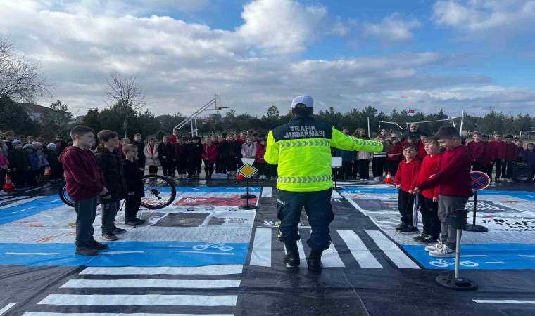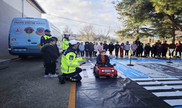 Edirne İl Jandarma Komutanlığı Trafik Jandarması Timleri tarafından Keşan, İpsala ve Uzunköprü ilçelerine bağlı köylerdeki okullarda 445 öğrenciye uygulamalı trafik eğitimi verildi.