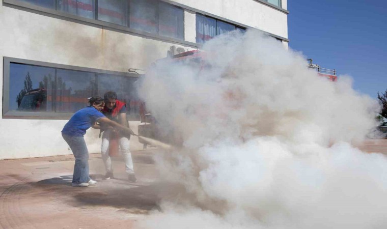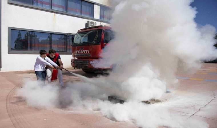 Öğretmenler ve öğrencilere, itfaiyeciler eşliğinde yangın söndürme ve yangına müdahale eğitimi verildi. İtfaiyenin araç ve gereçlerini tanıtan itfaiyeciler, yangına müdahale aşamalarını uygulamalı olarak gösterdi.