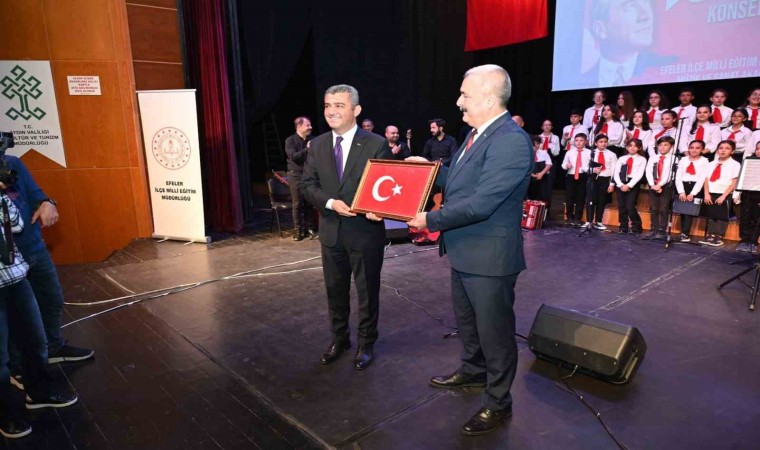 Konser ve resim sergi açılışının ardından ödül töreni gerçekleştirilirken, etkinliğin açılış konuşmasını yapan Efeler İlçe Milli Eğitim Müdürü Hakan Özcan; “Bugün Türk’ün adını tarihe altın harflerle yazdığı Kurtuluş Savaşı’nın eşsiz bir mücevheri olarak adlandırdığımız Cumhuriyetimizin 100. yılını kutluyoruz. Ne büyük bir şereftir ki bizler bugünü Türk olmanın haklı gururunun yanı sıra Türkiye Yüzyılı’nı da yaşayarak taçlandırıyoruz. Türk olmak demek her alanda gelişmiş, lider ruhlu olmak demektir. Bu düsturla yola çıkan Efeler İlçe Sanat Akademisi de oluşturduğu yol haritasında dinamik, özgüvenli gençler yetiştirmeyi kendine hedef seçmiştir. Gazi Mustafa Kemal Atatürk’ün de dediği gibi ‘Bütün ümidim gençliktedir. Sizler hepiniz, geleceğin bir gülü, yıldızı ve geleceğin ışığısınız’, diyen bir liderin emanetine doğru sahip çıkmak da önceliğimizdir. Sanat akademisi olarak Cumhuriyet meşalesi ile aydınlatarak çıktığımız bu yolda bir eğitim öğretim yılı boyunca çeşitli görsel, işitmeyle ilgili öğeleri kullanarak sanatın her dalında gençlerimizi yönlendirecek ve siz kıymetli Aydın halkına çalışmalarımızı sunacağız. Bizlerden desteğini esirgemeyen başta Valimiz olmak üzere Efeler İlçe Kaymakamıma, İl Milli Eğitim Müdürüme, değerli velilerime ve emeğini esirgemeyen çocuklarıma teşekkürü borç bilirim. Cumhuriyet bizlerden fikri hür vicdanı hür çalışkan gençler bekliyor. Yarınları bu güzel çocuklarla şekillendireceğiz” dedi.