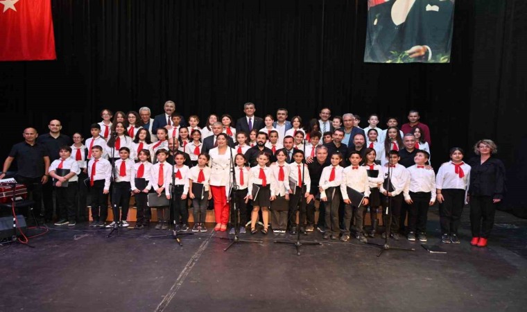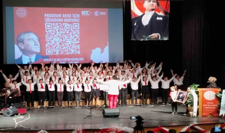 Efeler İlçe Milli Eğitim Müdürlüğü koordinesinde kurulan Müzik ve Sanat Akademisi tarafından ortaokul öğrencilerinden oluşan Türk Halk Müziği Çocuk Korosu’nun 100. yıl konseri, büyük beğeni topladı.
