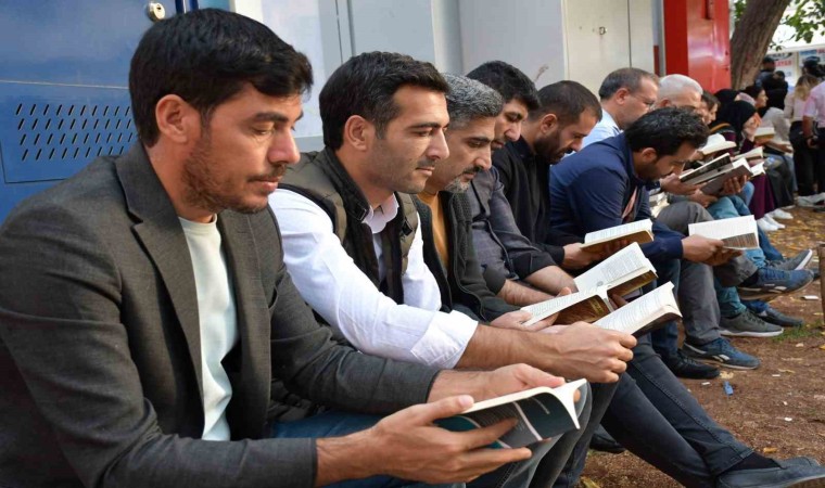 Şanlıurfa’nın Siverek ilçesinde kitap okuma farkındalığını artırmak isteyen 2 öğrencinin girişimiyle yüzlerce kişi alanda toplanarak kitap okudu.