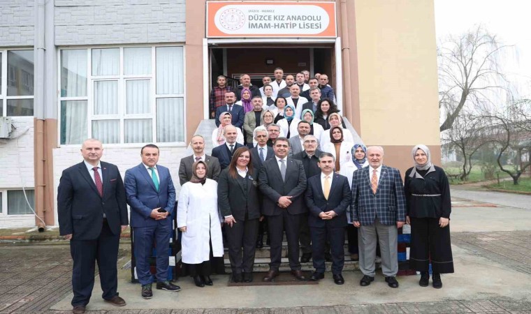 Düzce Kız Anadolu İmam-Hatip Lisesi’ni Vali Aslan ve eşi Pınar Ölmez Aslan ziyaret etti. Burada öğrenciler ve öğretmenler ile bir araya gelen Vali Aslan, öğrencilerin hedeflerini dinledi. Sınıfları ziyaret ederek, öğrencilerin hem derslerinde ki başarılarını hem de hayat hedefleri ile ilgili karşılıklı sohbet etti. Selçuk Aslan daha sonra okul idarecilerinden eğitim faaliyetleri hakkında bilgi alarak gerçekleştirdiği öğretmenler odası toplantısında öğretmenlere Türkiye Yüzyılı Maarif Modeli ve eğitim konusundaki özverili çalışmaları için teşekkür etti.
