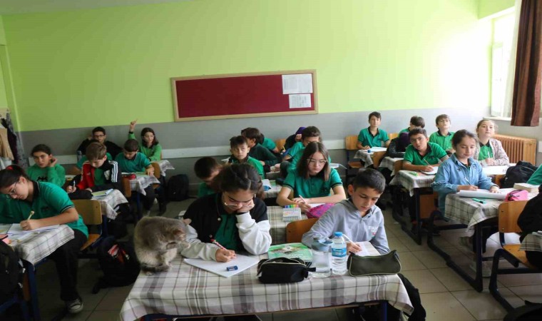 SAMSUN (İHA) – Öğrencilerin ‘Duman’ ismini verdiği kedi, okulda barınıp derslere giriyor. En çok Türkçe dersine katıldığı belirtilen Duman, okulun ’Değerler Ağacı’ tablosunda ise ‘Okulun en temiz öğrencisi’ olarak yer alıyor.