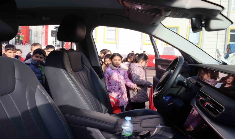 Kayseri’de ilkokul öğrencileri, ’Yerli Malı’ Haftası olarak bilinen Tutum, Yatırım ve Türk Malları Haftası dolayısıyla okullarına gelen yerli otomobil Togg’u inceledi.
