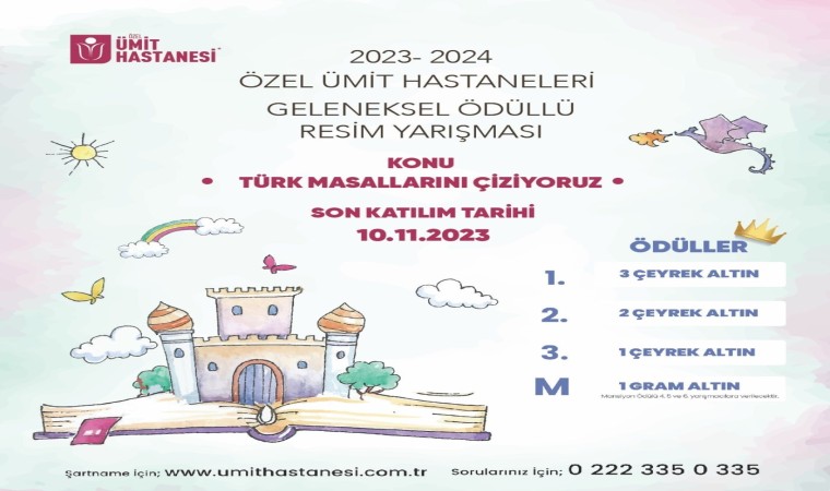 Eskişehir Özel Ümit Hastaneleri Geleneksel Resim Yarışması başlıyor. Özel Ümit resim yarışmasında bu yıl öğrenciler Türk masallarını resimleyecek.