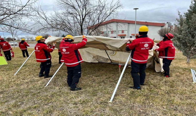 MEB AKUB’un yardımcı koordinatörü öğretmen Cengiz Yılmaz ise eğitimleri anlatarak, “6 Şubat’taki Kahramanmaraş depremi gibi depremlerde daha çok profesyonel ekip sayısını artırmak için bakanlığımızın aldığı bir karar doğrultusunda 81 ilde en az birer tane ekipler kuruldu. Her türlü olaylarda görev almak ve AFAD’a yardımcı olmak için kurulan bir ekibiz. Şuanda bir deprem sırasında yapılan tüm faaliyetler eğitim olarak yapıldı. Tatbikat olarak deprem bölgesinden istek geldi. Onun üzerine harekete geçildi. İlgili deprem bölgesine gidildi. Oradaki kriz masası ile görüşülüp kamp kuruldu. Ondan sonra bize verilen binada canlı arama kurtarma faaliyetleri tatbikatları yapıldı” diye konuştu.