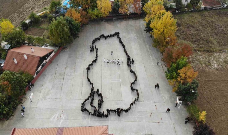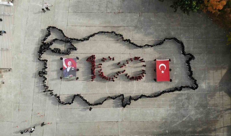 Bolu Köroğlu İlk ve Ortaokulunun 650 öğrencisi ve 52 öğretmen, Türkiye Cumhuriyeti’nin 100’ncü yılına özel okul bahçesinde Türkiye haritası ve ay-yıldız koreografisi oluşturdu. Öğrencilerin ve öğretmenlerin oluşturduğu muhteşem görsel havadan görüntülendi.