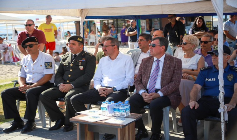 Öğretmenler Mahallesi Halk Plajı’nda düzenlenen törene, TÜRÇEV İzmir ve Kuzey Ege İlleri Şubesi Koordinatörü Yetkin Karabinalı ve İlçe protokolü katıldı.