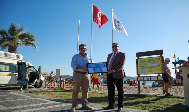Balıkesir’in Burhaniye ilçesinde Öğretmenler Mahallesi Halk Plajı’nda Mavi Bayrak töreni yapıldı.
