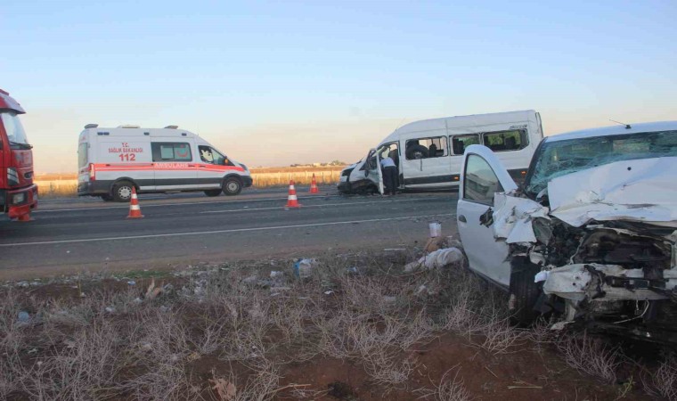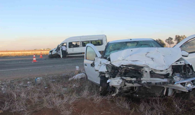 Şanlıurfa’da öğretmenleri taşıyan servis minibüsünün otomobil ile çarpışması sonucu 13’ü öğretmen 15 kişi yaralandı.