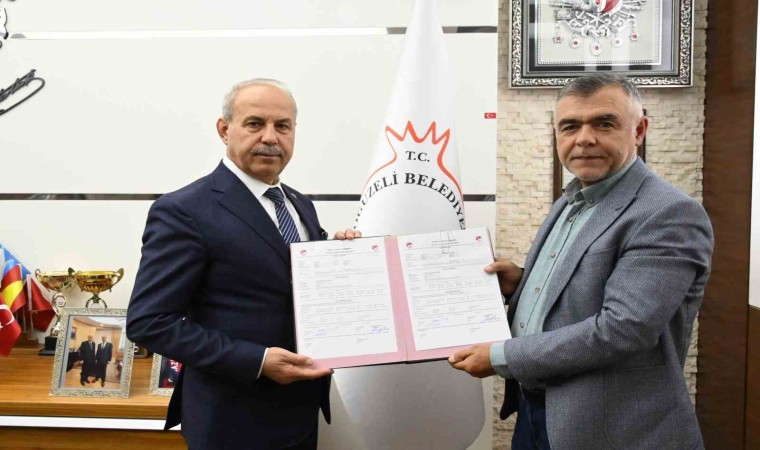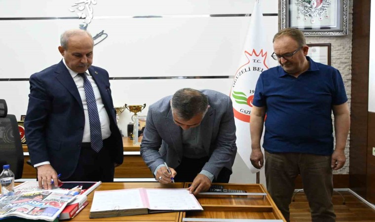 Okan Tere kendini yeşil beyazlı renklere bağlayan imzayı Oğuzeli Belediye Başkanı Mehmet Sait Kılıç’ın makamında attı.